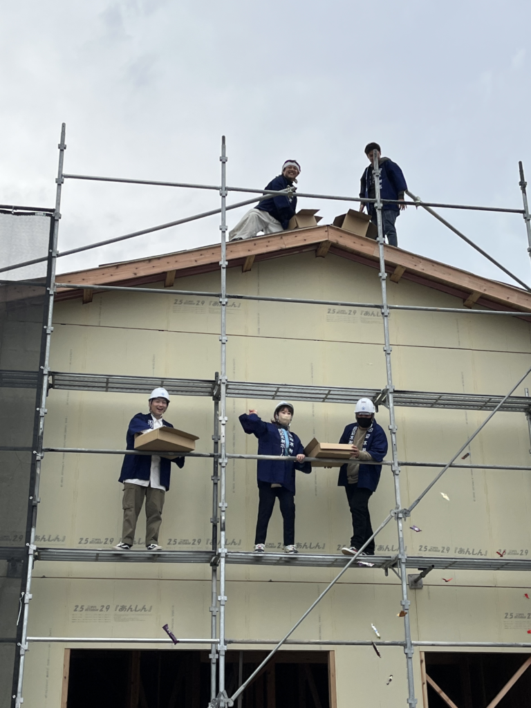 住宅の基本構造が完成することで、無事に上棟が行われたことを祝い今後に向けて家内安全・工事安全を祈願するものです。