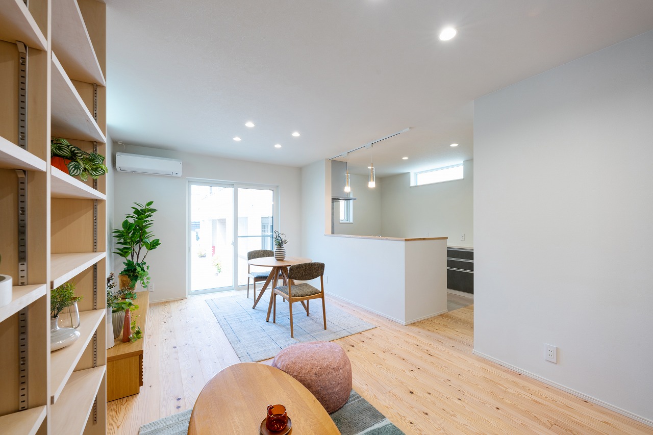 施工事例 works リビングにワークスペースのあるナチュラルなお家 新築 リビングにワークスペースのあるナチュラルなお家 リビングに印象的な収納棚を設け、お家で自分らしくお仕事ができる居心地のいい空間ができました。杉の床はそのまま座ったりごろごろしたりくつろいだりしても気持ちがいい。シンプルな間取りの中で、ご飯を食べるとき、仕事をするとき、趣味のことをするとき、ベランダでビールをのむときなどなどこんな生活をしていくという未来を詰め込んだお家になりました。 延床 25.28坪 (83.62㎡) 所在地 福岡市南区 前の記事 施工事例一覧